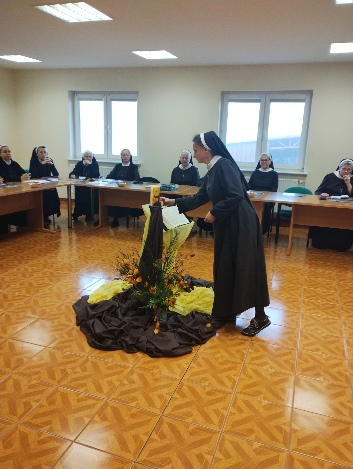 Właśnie wokół słów tematu skupiło się pierwsze spotkanie przedkapitulne w Orliku, na którym spotkały się uczestniczki przyszłej Kapituły Prowincjalnej. Był to czas refleksji nad owocami pracy wykonanej w tym temacie przez siostry we wspólnotach lokalnych oraz uważnego słuchania Ducha Świętego i siebie nawzajem. Towarzyszył siostrom w tym procesie rozeznania o. Archanioł Borek OFM, który podczas spotkania wygłosił trzy konferencje. Każdą z konferencji oparł na ważnym dla rodziny franciszkańskiej jubileuszu, który przypada w czasie lat poprzedzających oraz w roku Kapituły – jubileuszu 800-lecia: stygmatyzacji św. Franciszka w 1224r., napisania przez niego Pieśni Słonecznej w 1225r. oraz jego śmierci w 1226r. W każdym z tych wydarzeń odnajdujemy aktualne wezwania, które Pan kieruje do nas dzisiaj, by jeszcze wierniej iść za Nim.